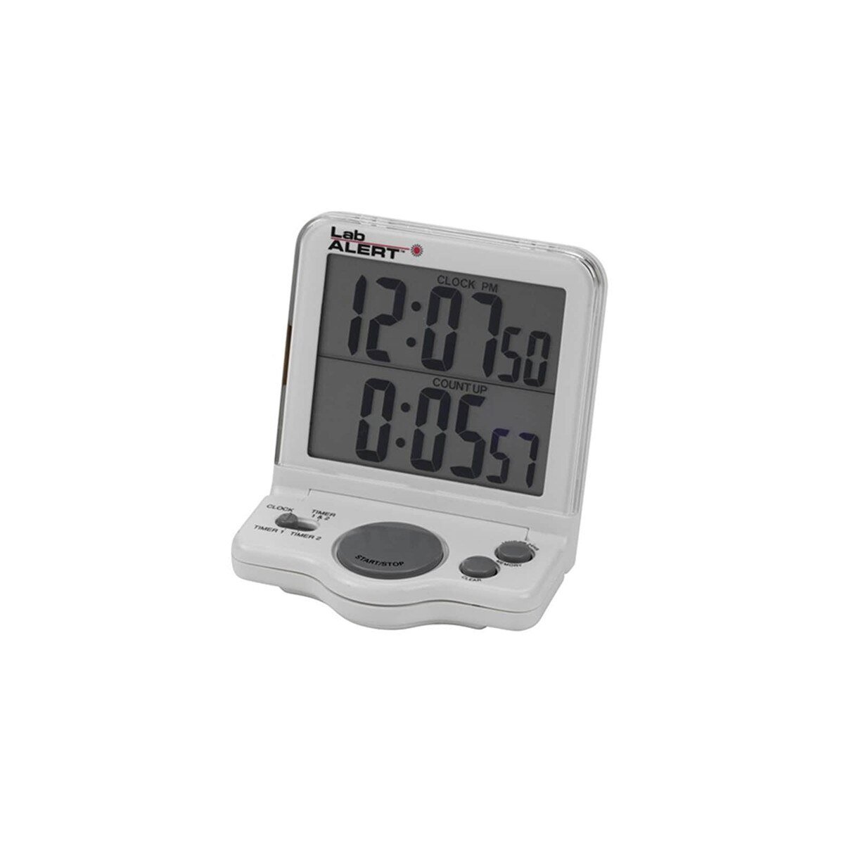 This dual display clock/timer can be used to count up, or two timers can be used to count down independently. It features both an audible and visual alarm. The clock and timer or two independent timers can be displayed simultaneously.